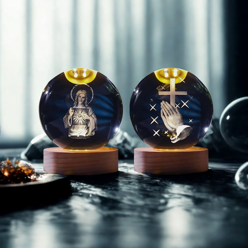 Discover beauty and spirituality in one. This decorative 3D crystal sphere lamp engraves religious images with laser precision, illuminated with a soft LED light that creates an atmosphere of peace and reflection. Ideal for placing in your bedroom, prayer room, or as a gift on special dates like Christmas or Easter.