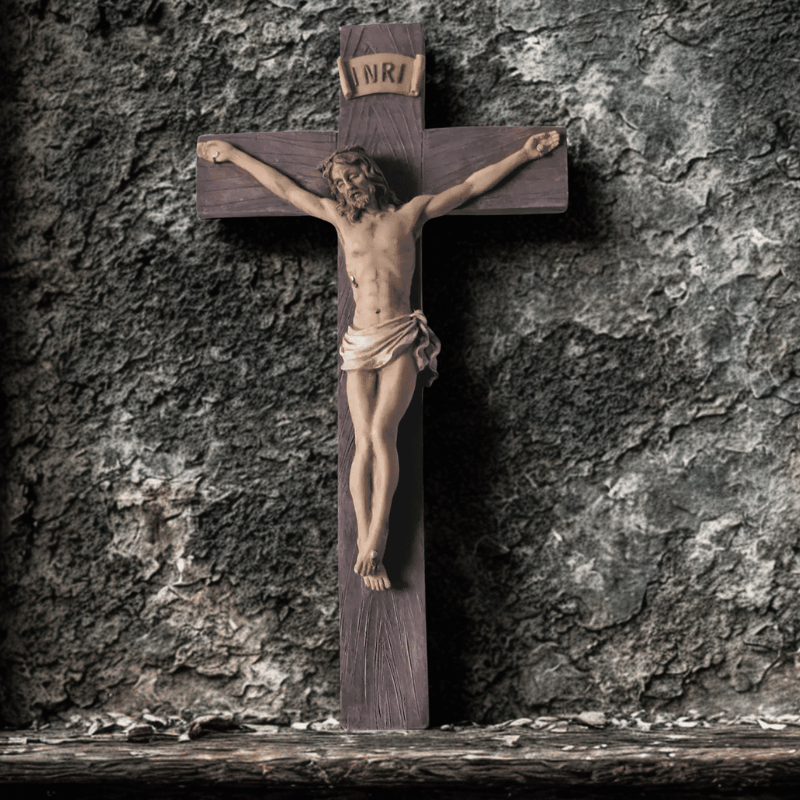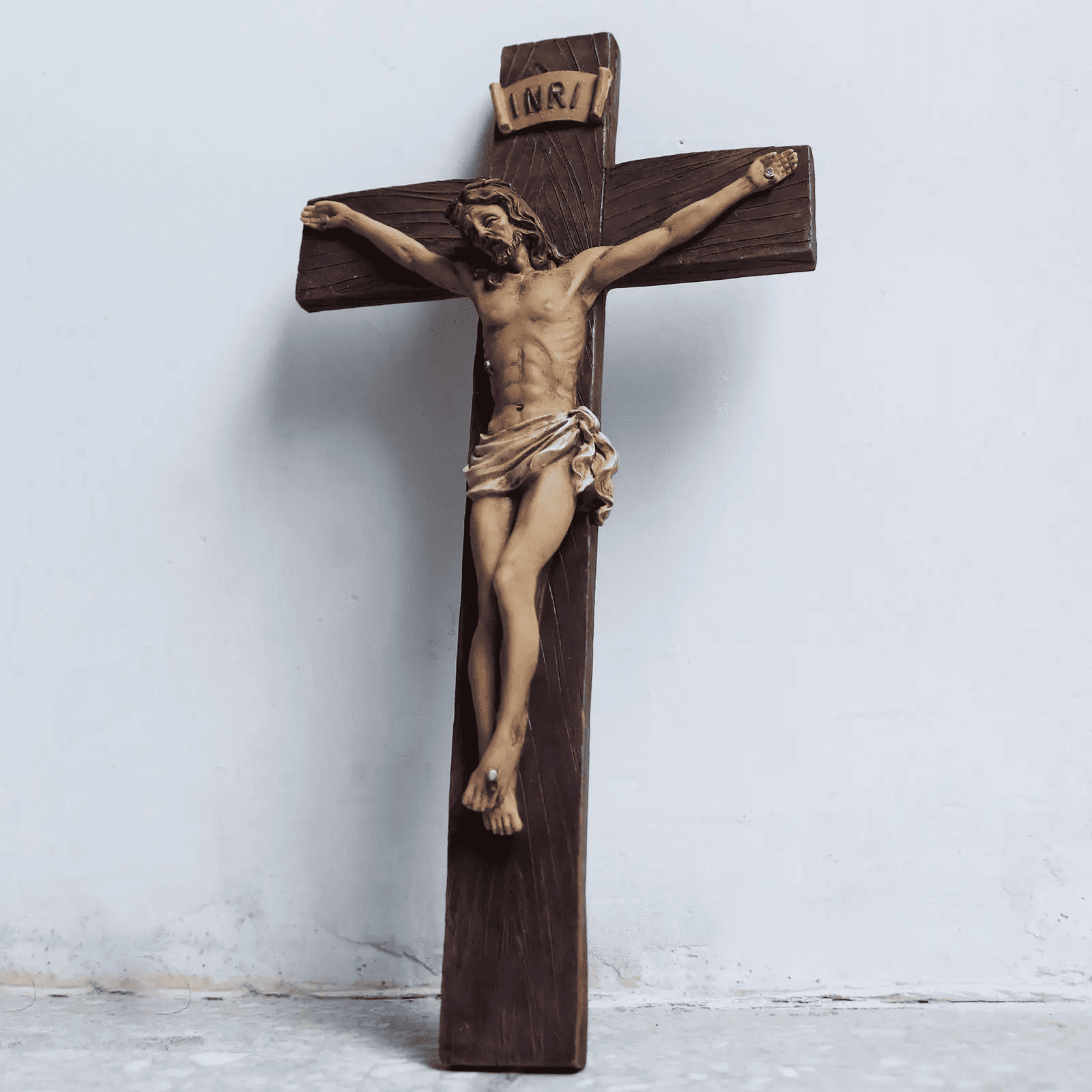 Crafted from high-quality resin that is weather and water resistant, this cross represents the power of forgiveness and divine redemption. Its ideal size makes it easy to hang on any wall, adding a spiritual and elegant touch to the environment.