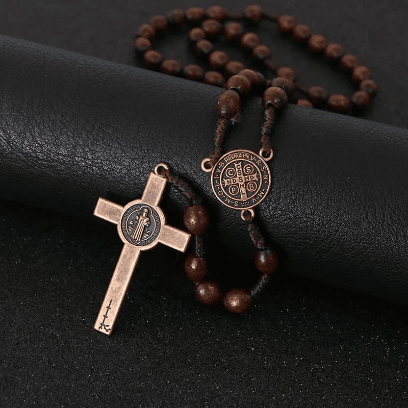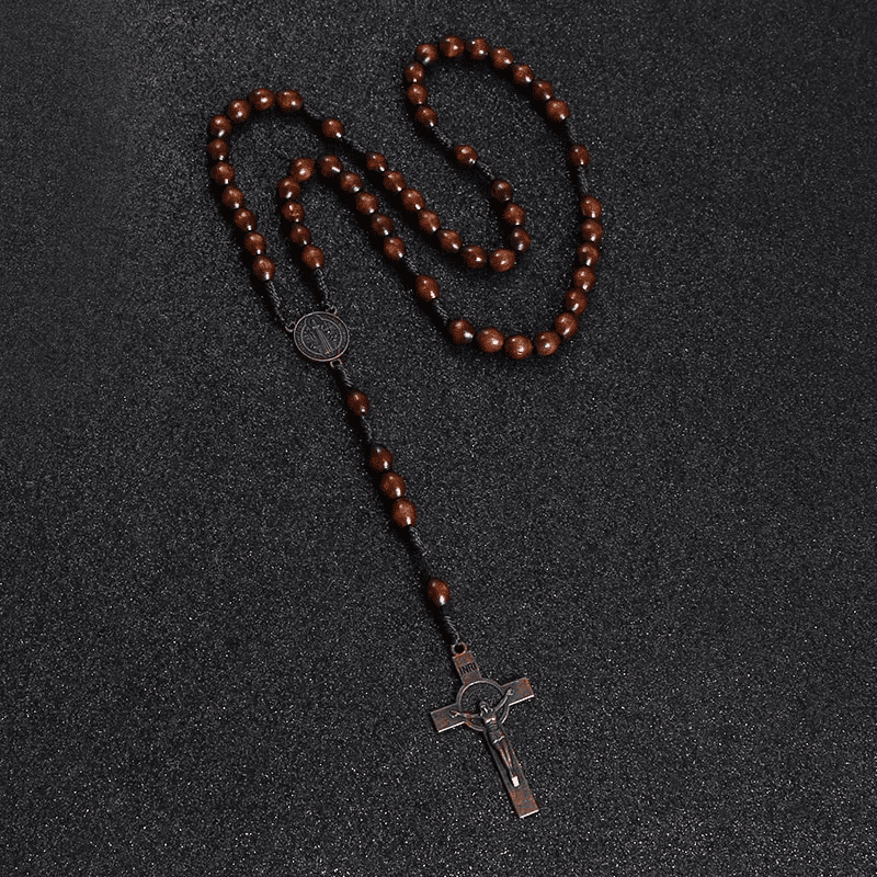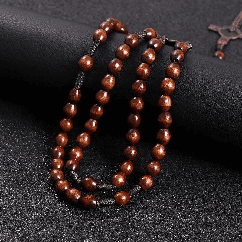 This rosary is an expression of deep faith and tradition, connecting the divine with the earthly through every detail. Its wooden beads, along with the aged bronze finish, convey serenity and spirituality in every prayer.